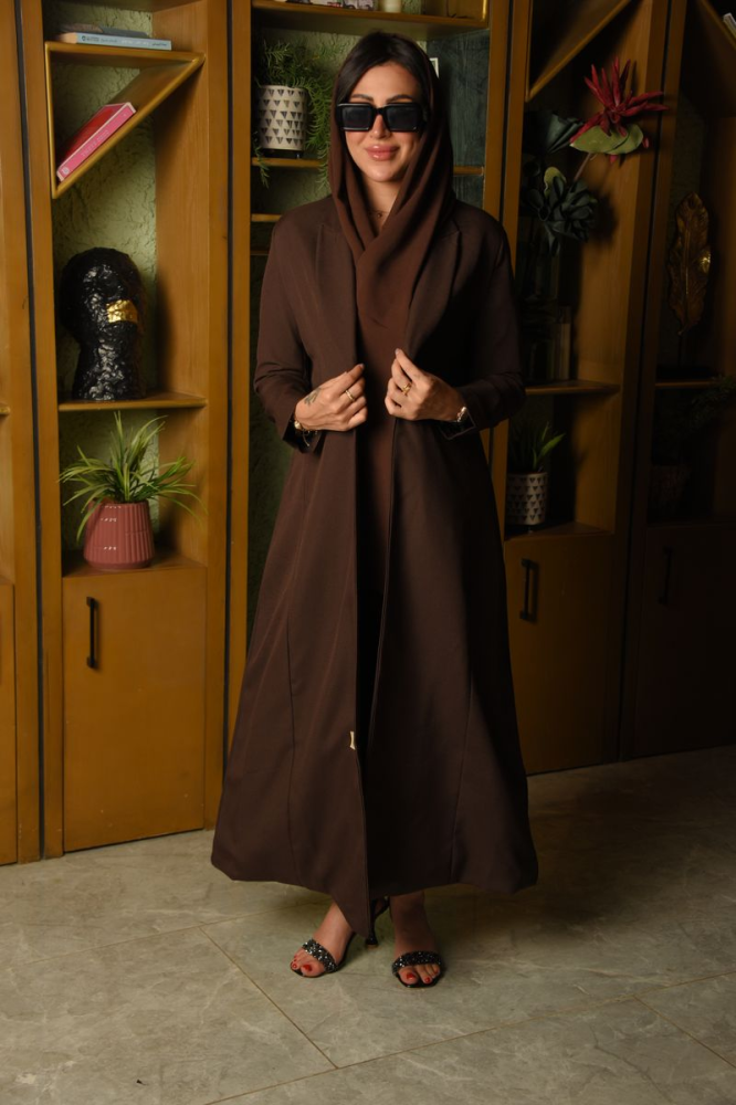 عباية بني غامق تعكس مزيجًا رائعًا بين البساطة والأناقة، حيث يمنحك اللون البني الدافئ حضورًا هادئًا وراقيًا، بينما تضيف القصة الواسعة لمسة من الراحة والمرونة لتكوني بكامل أناقتك في مشاويرك اليومية ومناسباتك الخاصة على حد سواء.