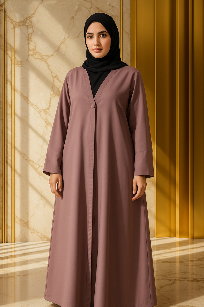 - القصّة: نص كلوش تمنح العباية اتساعًا متوازنًا وحركة ناعمة في اللبس.